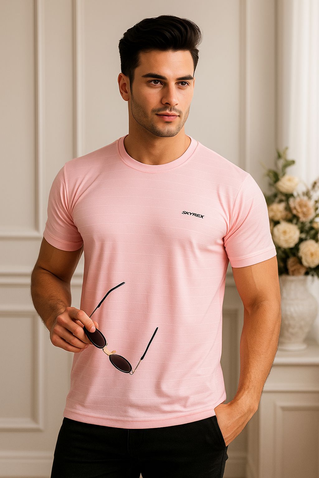 SKYREX LIGHT PINK SPORTS ROUND NECK T-SHIRT