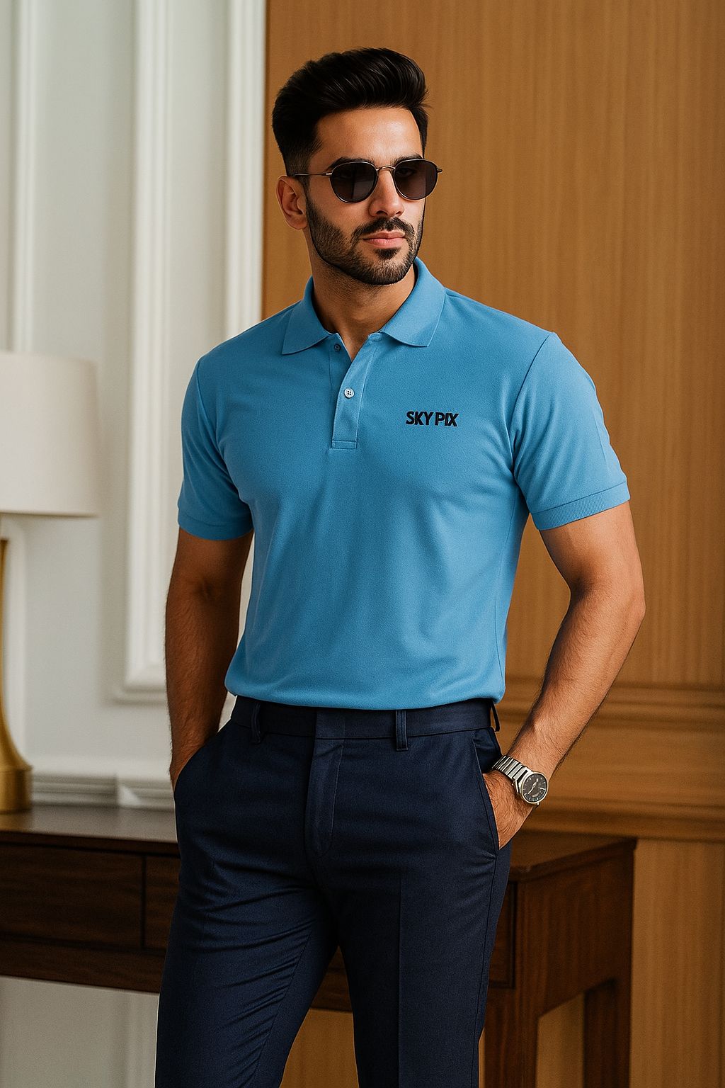 SKYREX MENS PLANE SKYBLUE POLO TSHIRT