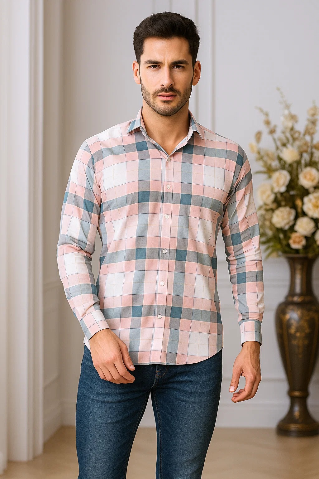 SKYREX MENS PINK-WHITE MULTICOLOUR SHIRT